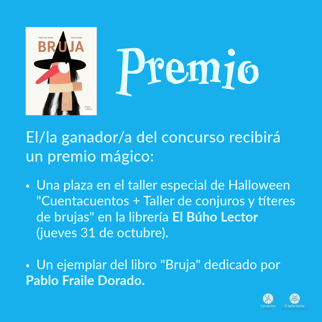 - 🧙♀️ Una plaza en el taller especial de Halloween «Cuentacuentos + Taller de conjuros y títeres de brujas» en la librería El Búho Lector (jueves 31 de octubre).