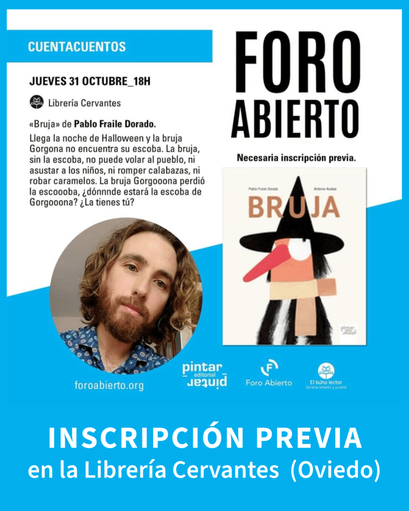 Y para quienes deseen vivir de cerca esta mágica historia, hoy jueves a las 18:00 h, la mismísima Bruja Gorgona acompañará a Pablo Fraile en la librería Cervantes de Oviedo, ¡buscando su escoba perdida! Este encuentro incluirá un divertido cuentacuentos y un taller de títeres donde niñas y niños podrán crear sus propios personajes.