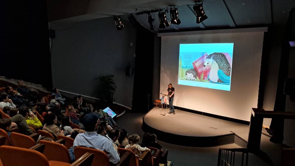 Ayer por la tarde, vivimos una experiencia mágica contando a toda pantalla el álbum infantil ilustrado «El sombrero que voló», de José Carlos Román y Mónica Carretero.