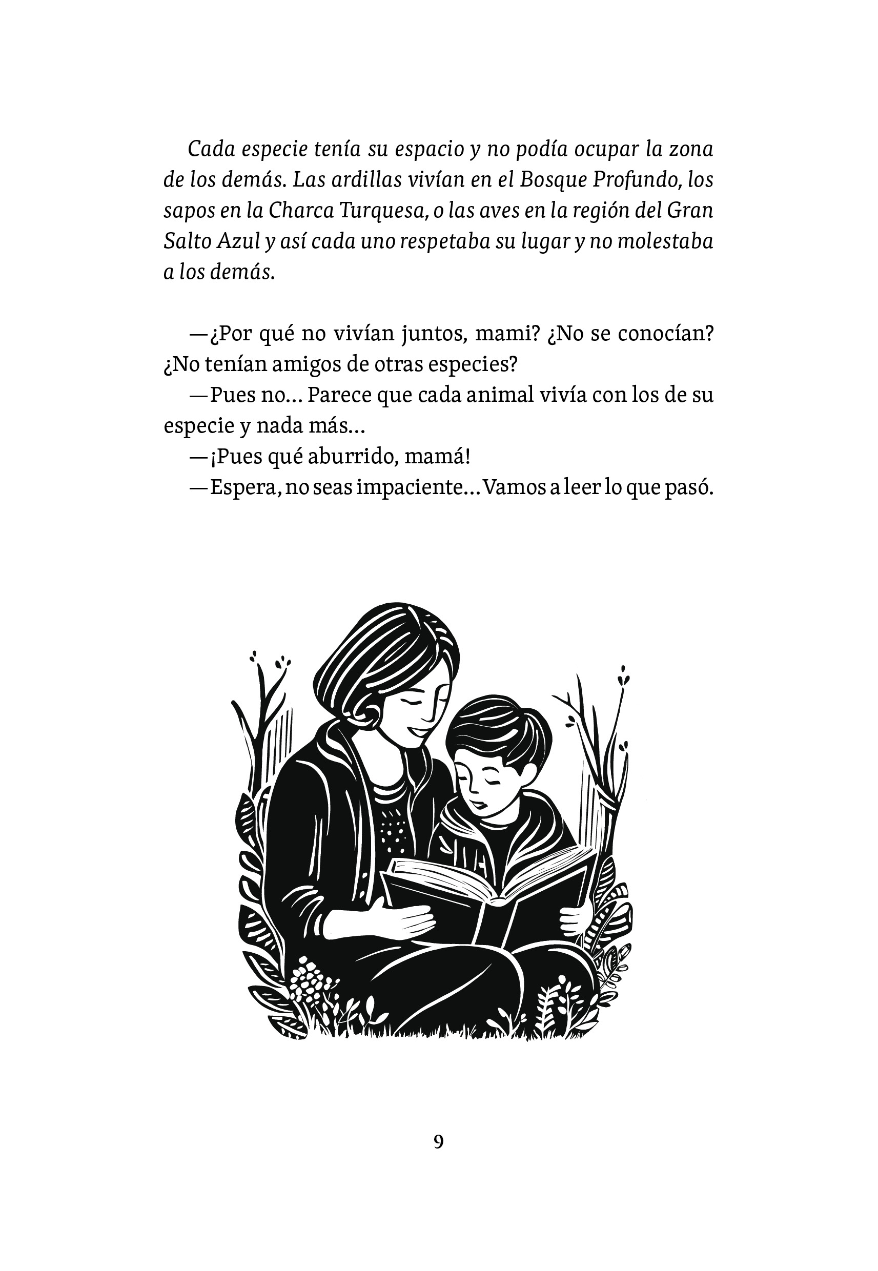Este relato mágico explora el poder de la colaboración y el respeto por los demás seres vivos, mientras los personajes aprenden que todos somos parte de un mismo bosque, una misma vida. A través de sus páginas, las lectoras y lectores se sumergirán en una historia que celebra la riqueza de la naturaleza, la importancia de la comunidad y el amor por el entorno que debemos cuidar. Un cuento que hará latir el corazón de pequeños y mayores, recordándonos que la verdadera magia está en la convivencia y el respeto hacia lo que nos rodea.