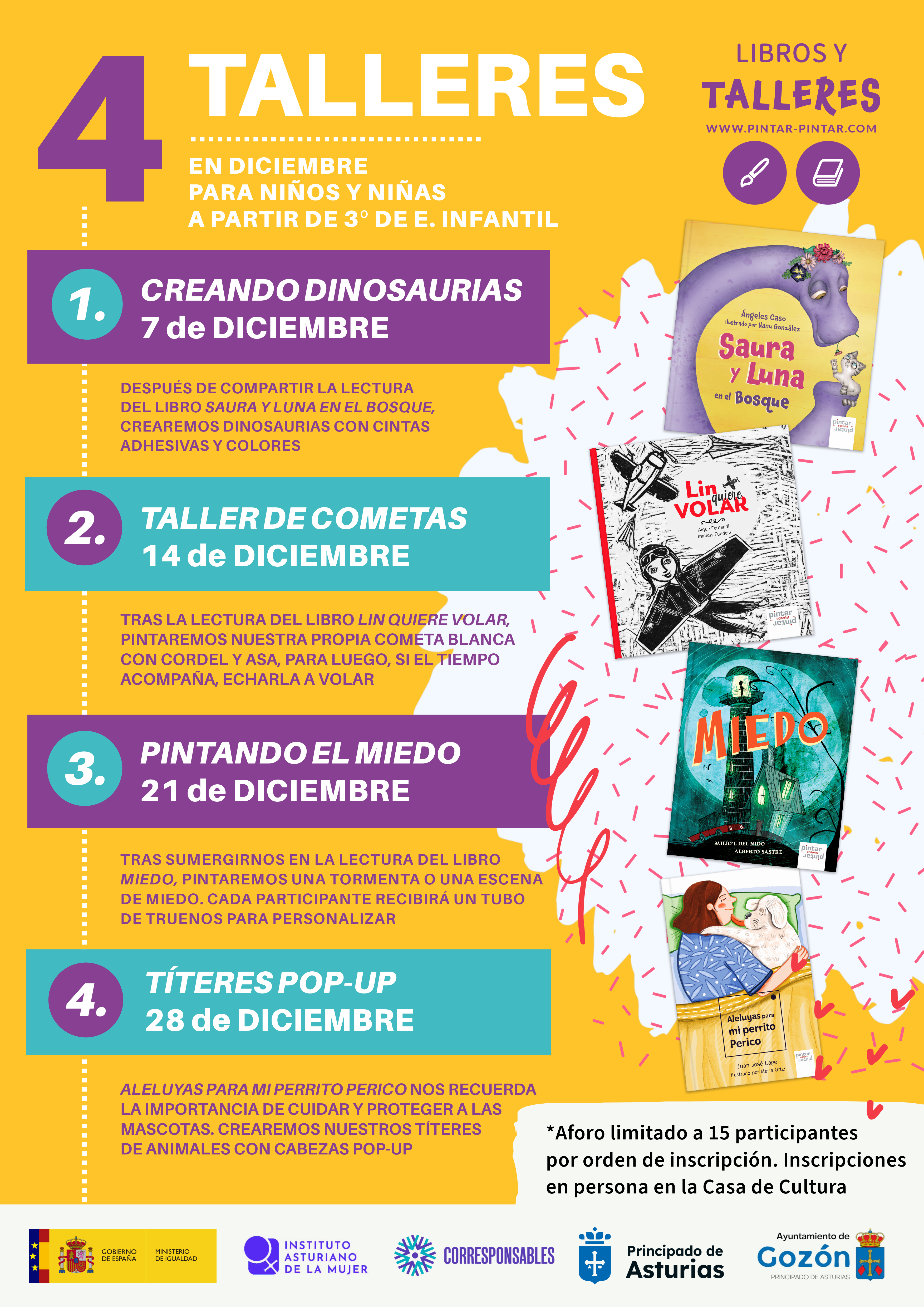 ¡Este diciembre, te invitamos a compartir las mañanas de los sábados en la Casa de Cultura de Gozón con un programa lleno de lectura, arte y diversión! Cada sesión, diseñada especialmente para niñas y niños, combina libros Pintar-Pintar con talleres creativos.