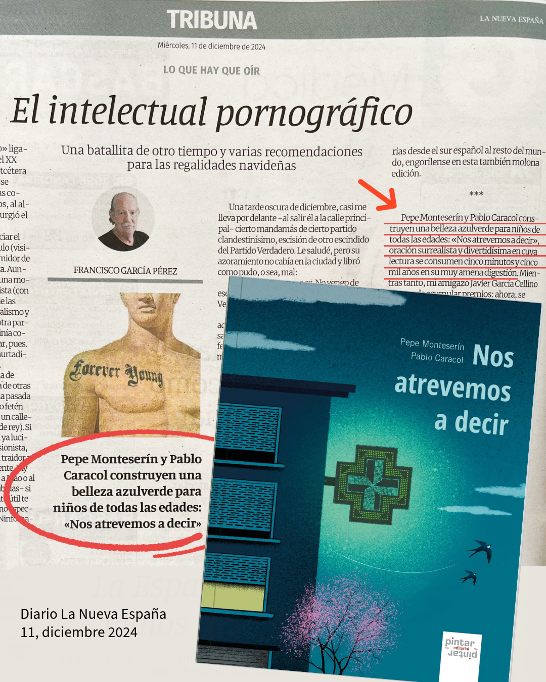 Hoy el álbum ilustrado Nos atrevemos a decir, escrito por Pepe Monteserín e ilustrado por Pablo Caracol, ha sido destacado por Francisco García Pérez en su artículo para el diario La Nueva España, como una de las recomendaciones de lectura para estas Navidades.