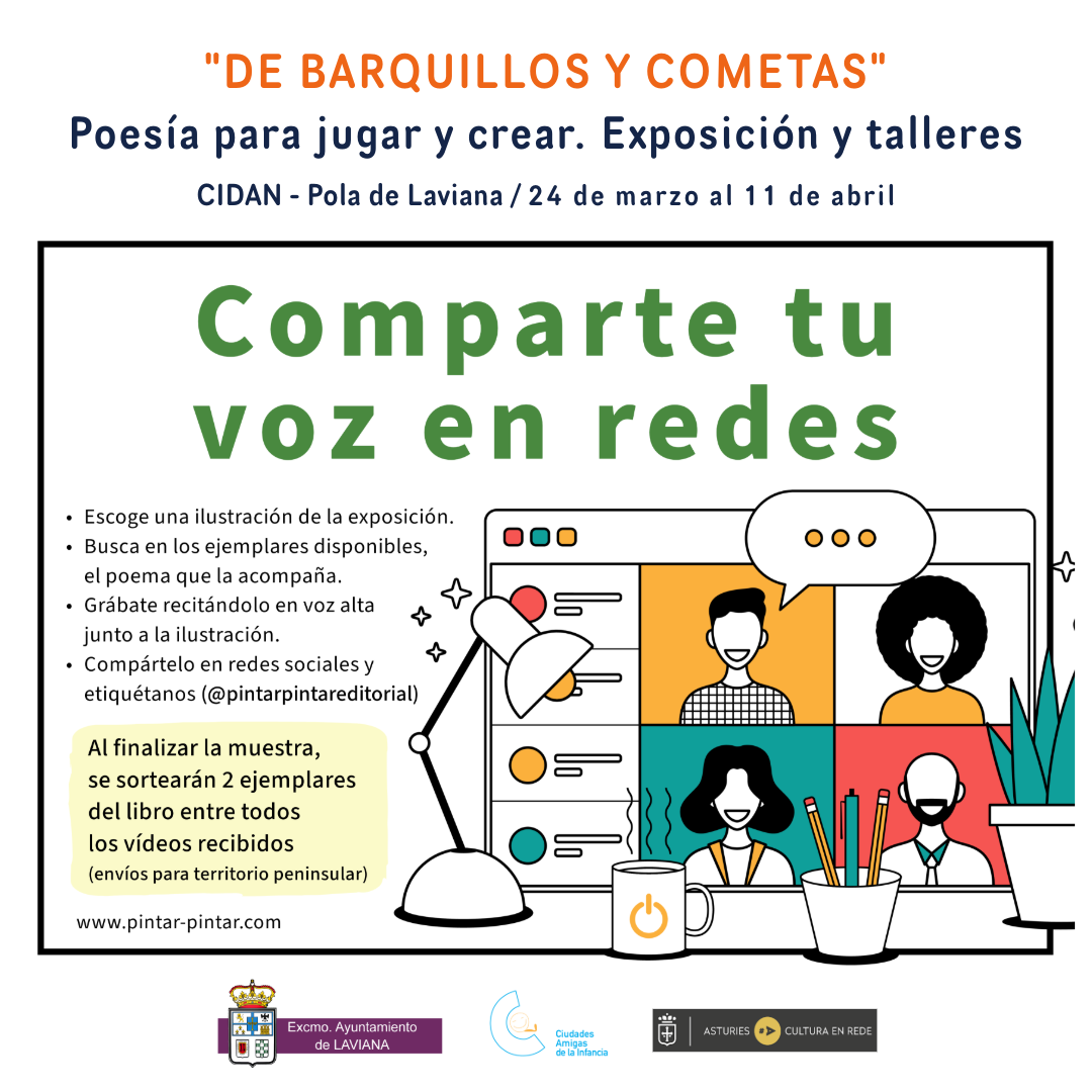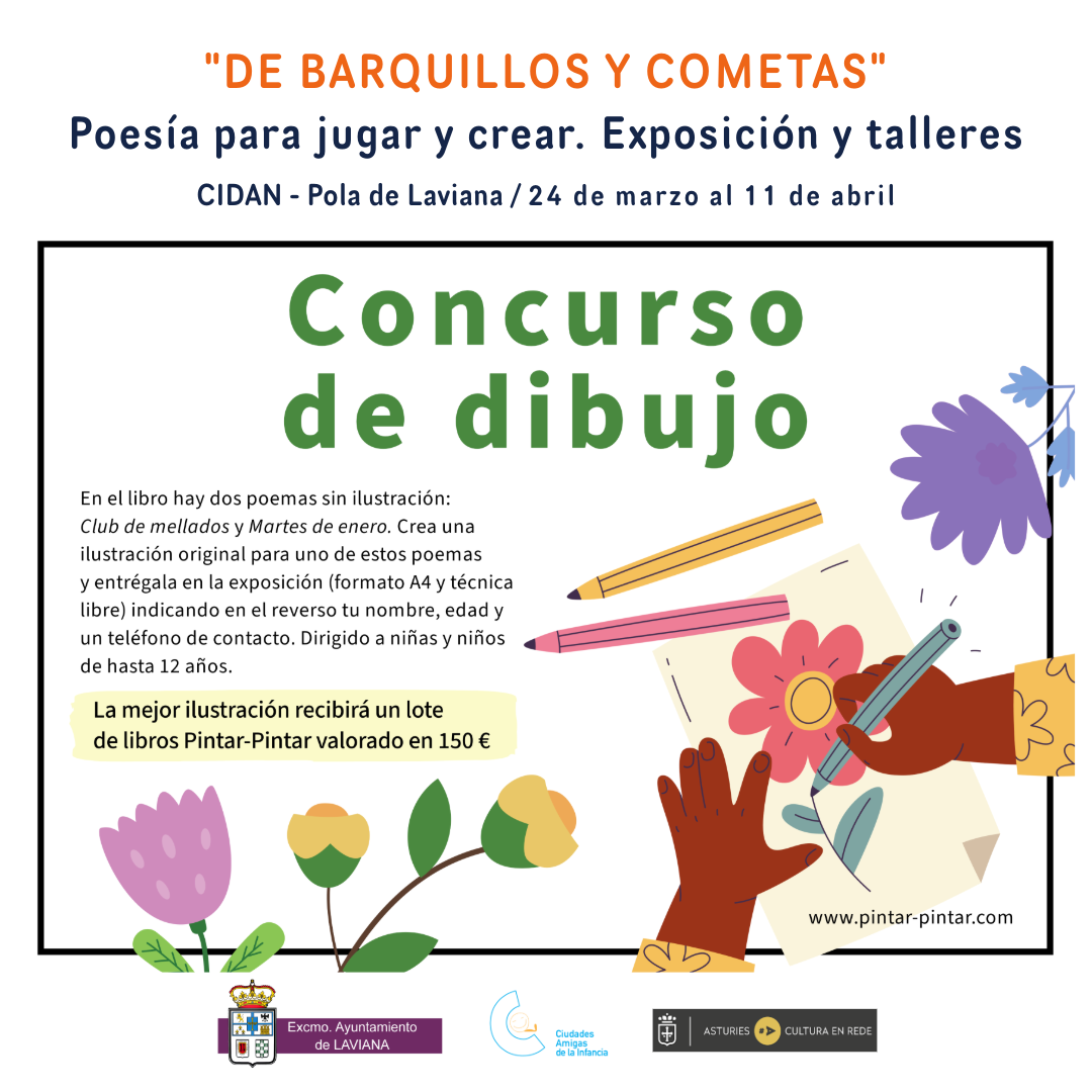 Desde el lunes 24 de marzo y hasta el 11 de abril, el CIDAN de Pola de Laviana acoge la exposición del poemario ilustrado De barquillos y cometas, con textos de Mª Rosa Serdio e ilustraciones de Ester Sánchez, dentro del circuito de literatura del programa Asturies Cultura en Rede. Esta muestra, dirigida a público infantil, juvenil y adulto, invita a recorrer la poesía desde lo visual, lo lúdico y lo colectivo, a través de una experiencia interactiva y participativa.