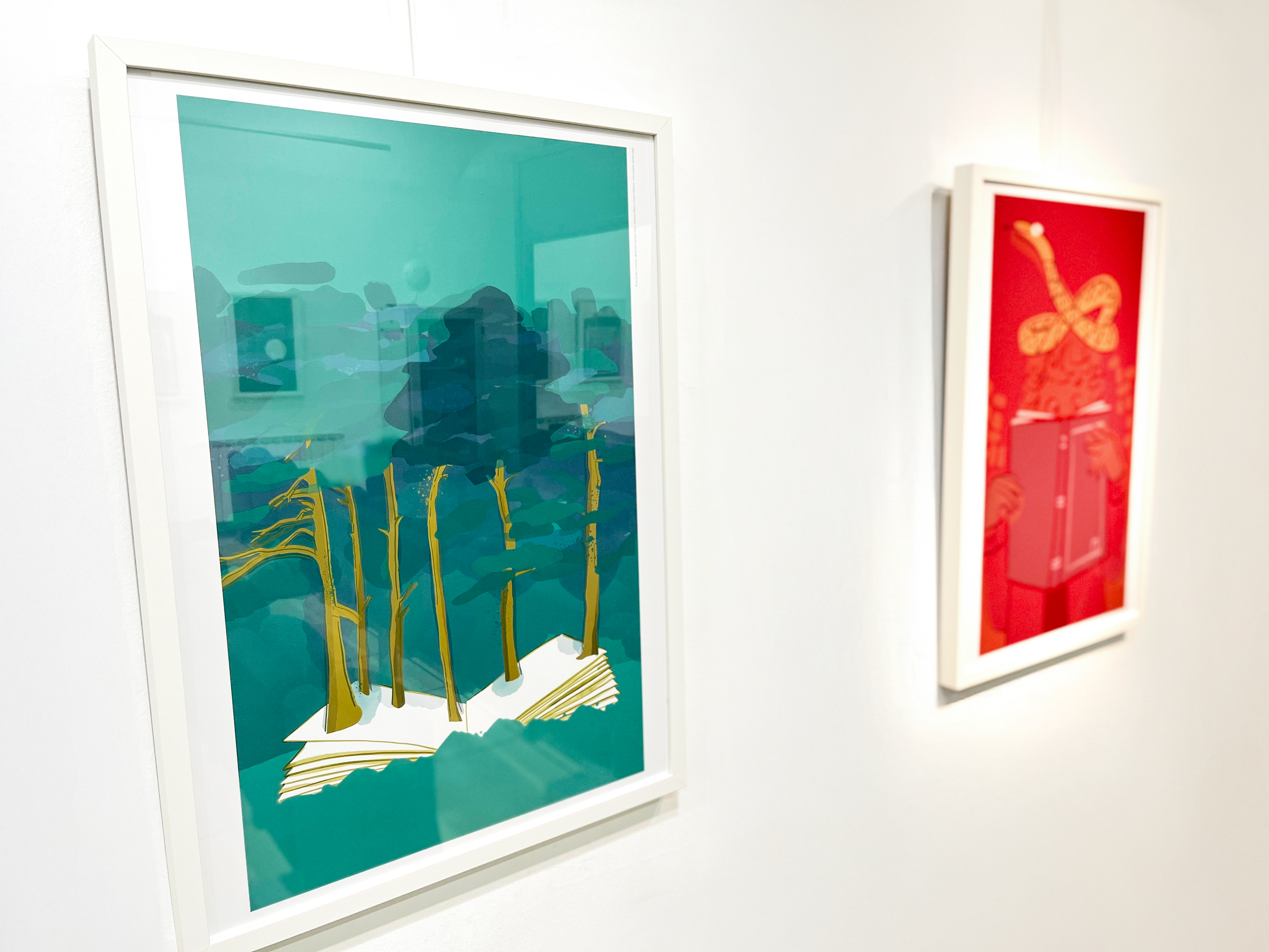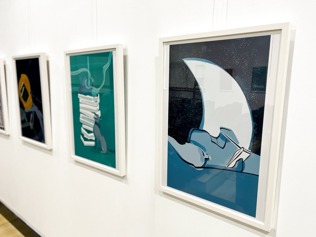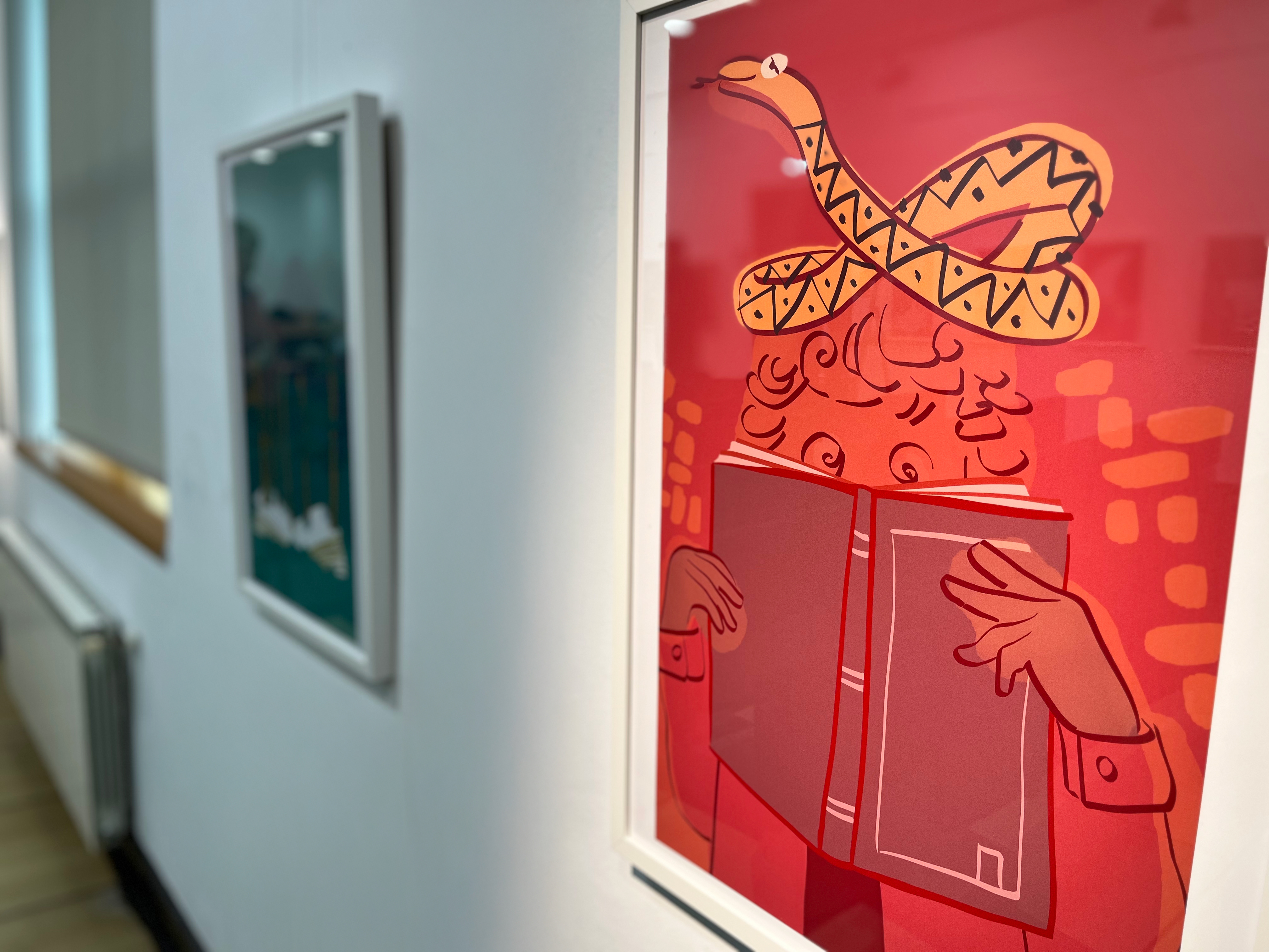 La exposición reúne 20 láminas enmarcadas en gran formato (50 x 70 cm) de ilustraciones seleccionadas del libro, que se presentan sin los textos poéticos originales. Esta elección transforma la visita en un juego visual y creativo, donde cada espectador es invitado a completar el diálogo entre palabra e imagen.