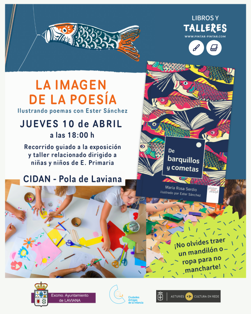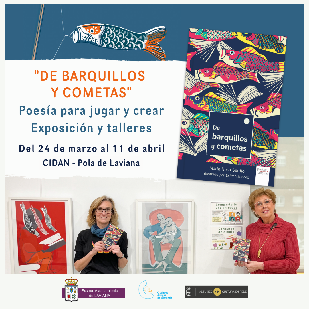 Durante tres días, escolares del concejo de Laviana visitarán la exposición «De barquillos y cometas. Descripciones poéticas para jugar y crear«, acompañados por la poeta Mª Rosa Serdio y la ilustradora Ester Sánchez. Cada grupo disfrutará de una visita guiada a la exposición, lectura poética y una actividad de creación artística inspirada en las ilustraciones y versos del libro De barquillos y cometas.