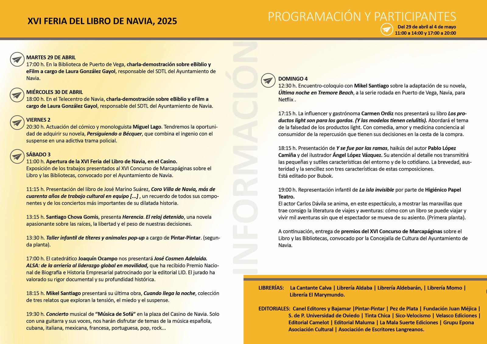 Nos alegra anunciaros que estaremos presentes en la XVI Feria del Libro de Navia, que se celebrará del 2 al 4 de mayo en el Casino de Navia. Este evento se ha consolidado como una cita imprescindible para todos los amantes de la lectura, y no podíamos dejar pasar la oportunidad de formar parte de él.