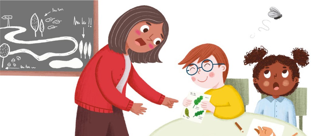 Acompañando a Garnacho nesti viaxe ta la ilustradora catalana Laura Varela, que s’enfrentó al retu de dar forma visual a lo que, por definición, tien de permanecer ocultu. El resultáu ye una serie d’escenes vives, coloríes y poblaes de personaxes que se repiten a lo llargo del llibru, creando un filu narrativu silenciosu pero eficaz. Varela, que trabaya con téuniques dixitales ensin renunciar al trazu manual, propón una estética cálida, cercana y cómplice: un «camuflaxe amable», como ella mesma lo defín, onde cada imaxe ye al empar escenariu y enigma.