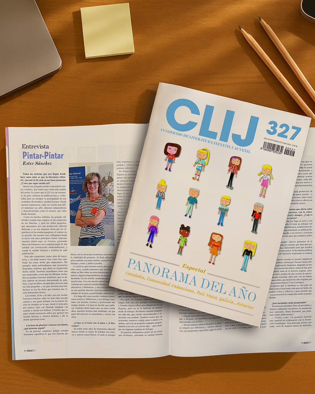 La revista CLIJ – Cuadernos de Literatura Infantil y Juvenil, publicación de referencia en el análisis del sector, incluye en su número 327 (septiembre-octubre 2025) una entrevista a Ester Sánchez, editora de Pintar-Pintar Editorial, en el año en que celebramos nuestro vigésimo aniversario.