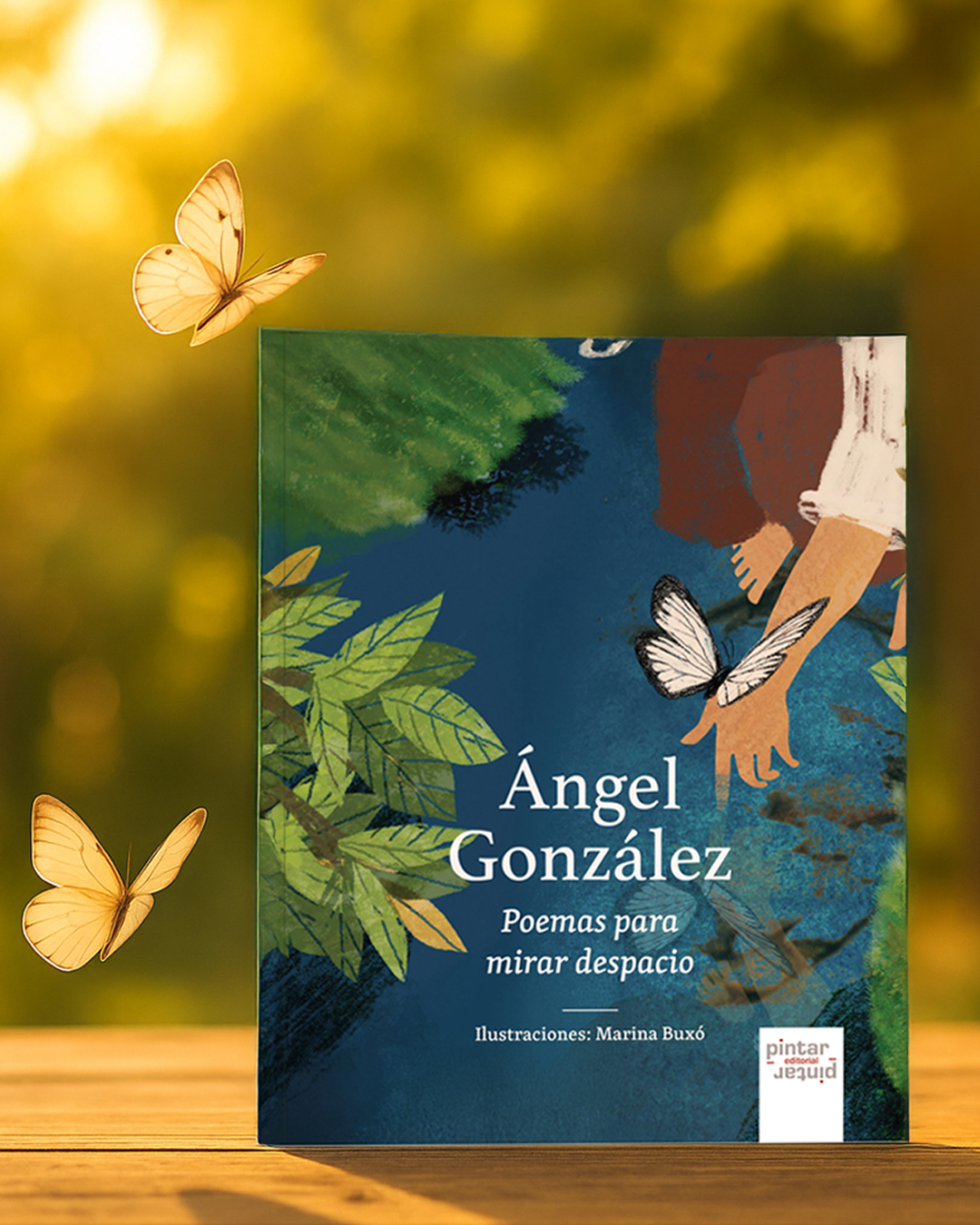 Una mariposa revolotea a lo largo del libro, a veces en primer plano, otras casi escondida. No es un adorno, sino un símbolo. Como el molinillo de viento que la editorial Pintar-Pintar utilizó en talleres anteriores para soplar los poemas al aire, la mariposa se convierte aquí en metáfora del alma poética: leve, libre, efímera. Un hilo conductor que une poemas, páginas y emociones, recordando que la poesía, como el vuelo, solo existe en movimiento.