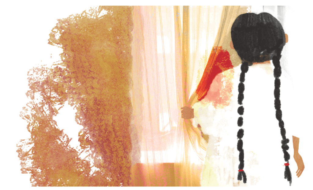Ese impulso —instintivo, vital, generoso— se traduce en imágenes llenas de delicadeza, textura y emoción. Buxó combina técnicas digitales con ceras, grafito y acuarela para crear un universo visual donde lo figurativo y lo sensorial conviven con naturalidad. Cada doble página deja espacio al silencio, al aire, a la imaginación de quien lee: una narración visual que acompasa la lectura y hace visible la respiración del verso.