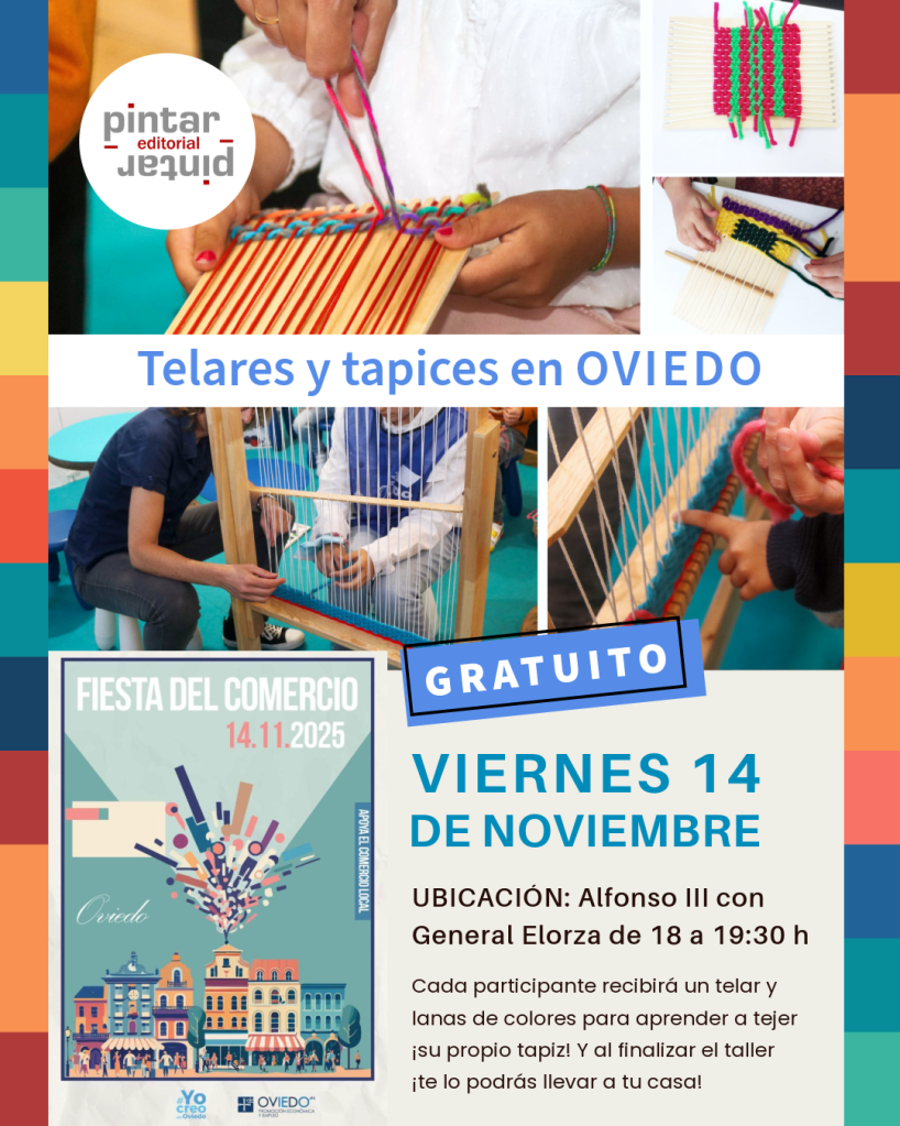 En numerosos puntos de la ciudad se desarrollarán una gran variedad de actividades de dinamización, entre ellas un taller Pintar-Pintar, en esta ocasión para enseñar a los más pequeños a tejer tapices.