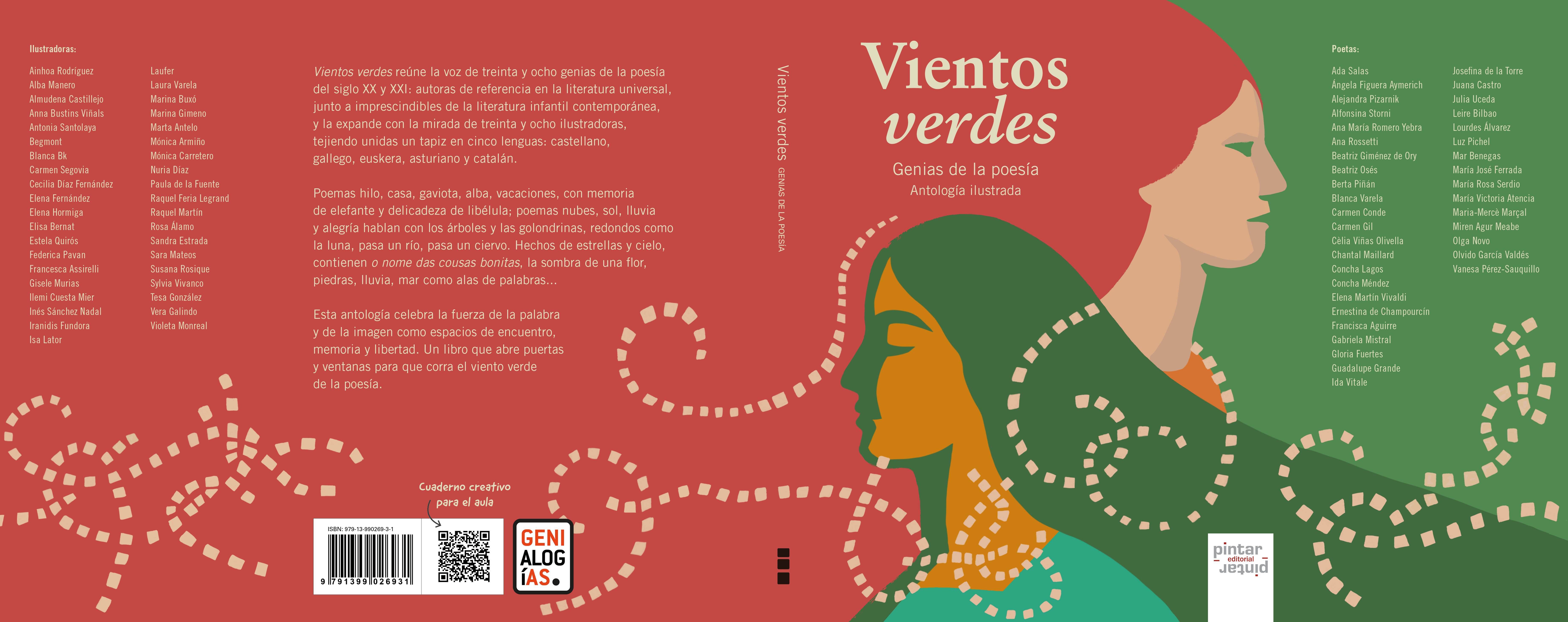 Vientos verdes. Genias de la poesía es una antología ilustrada que reúne la voz de treinta y ocho genias de la poesía del siglo XX y XXI: autoras de referencia en la literatura universal junto a imprescindibles de la poesía infantil contemporánea. Treinta y ocho genias de la ilustración acompañan y expanden estos poemas con una mirada libre, diversa y profundamente sensible, tejiendo juntas un tapiz en cinco lenguas: castellano, gallego, euskera, asturiano y catalán.