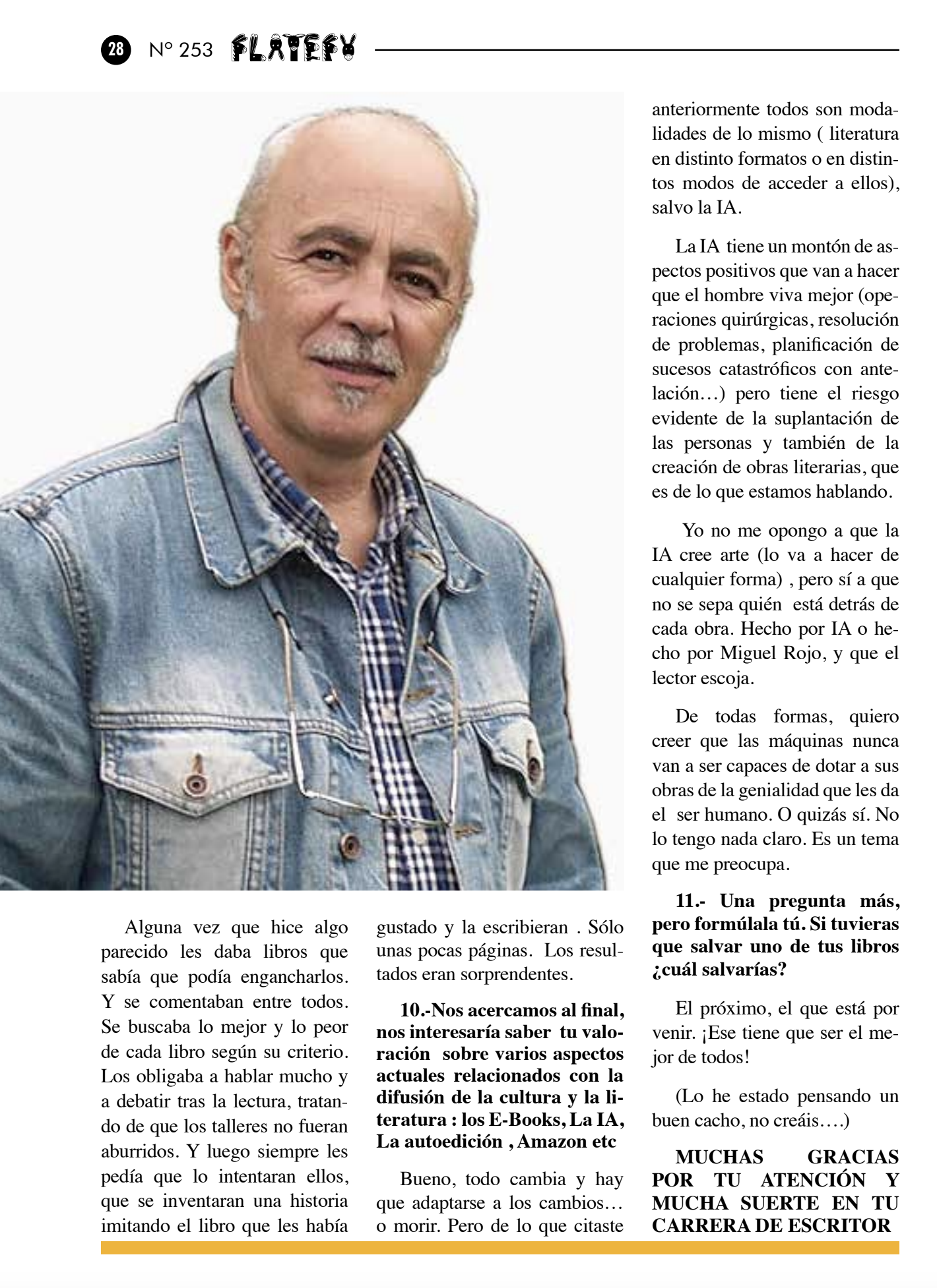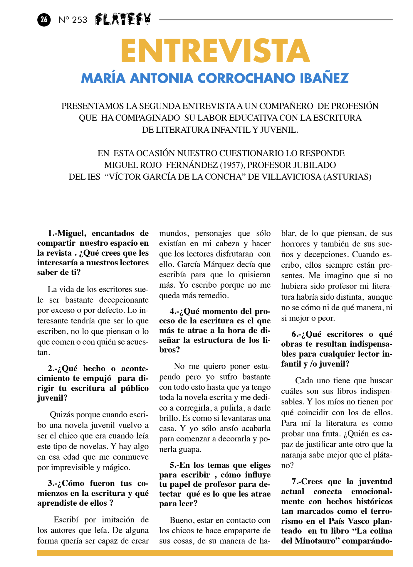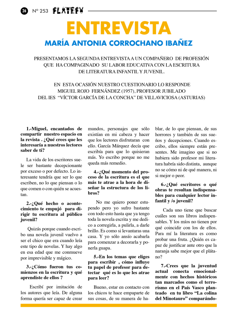 Entre ellos, destaca la entrevista al escritor Miguel Rojo, en la que reflexiona sobre su trayectoria como docente y autor, el proceso de escritura, la lectura en las aulas y la manera en que la literatura puede ayudar a comprender el mundo sin caer en el sermón. A lo largo de la conversación, Miguel Rojo aborda también cuestiones de plena actualidad, como el papel de la inteligencia artificial en la creación literaria, la mediación lectora o el valor de los libros bien contados para conectar emocionalmente con lectoras y lectores jóvenes.