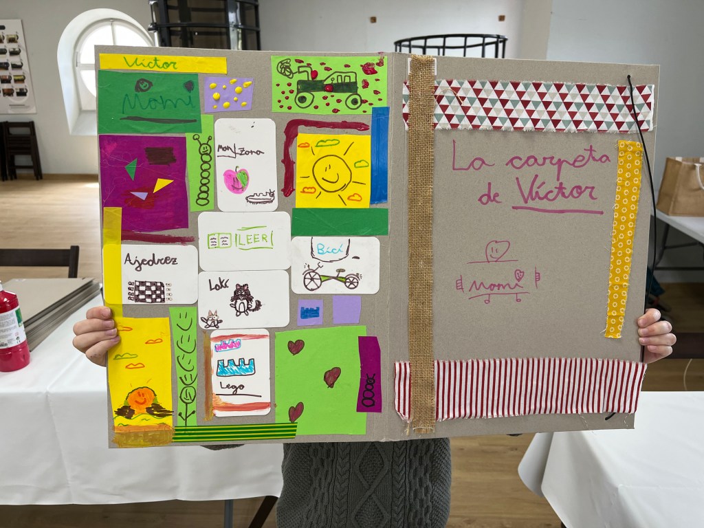 Crean su carpeta con cuidado, llenándola de su mundo: su familia, lo que les gusta, lo que les importa.